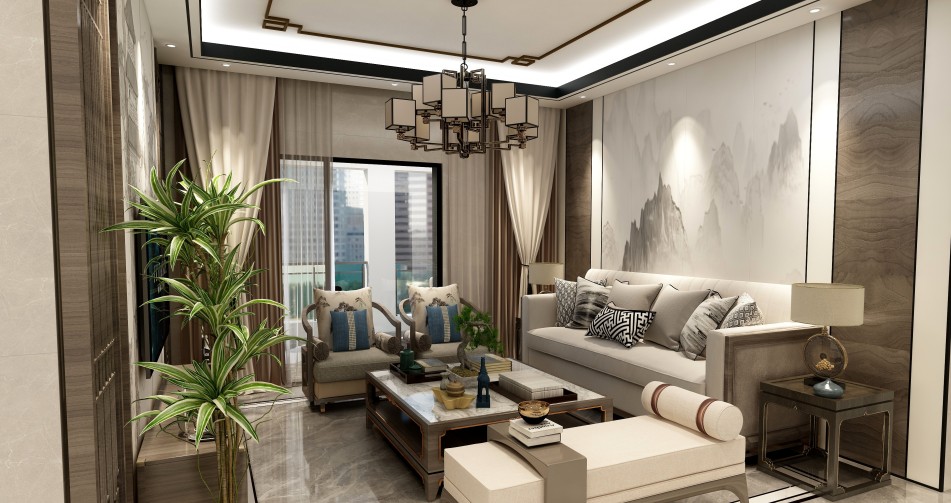 客厅沙发背景,一幅山水画体现了中式的韵味与氛围!