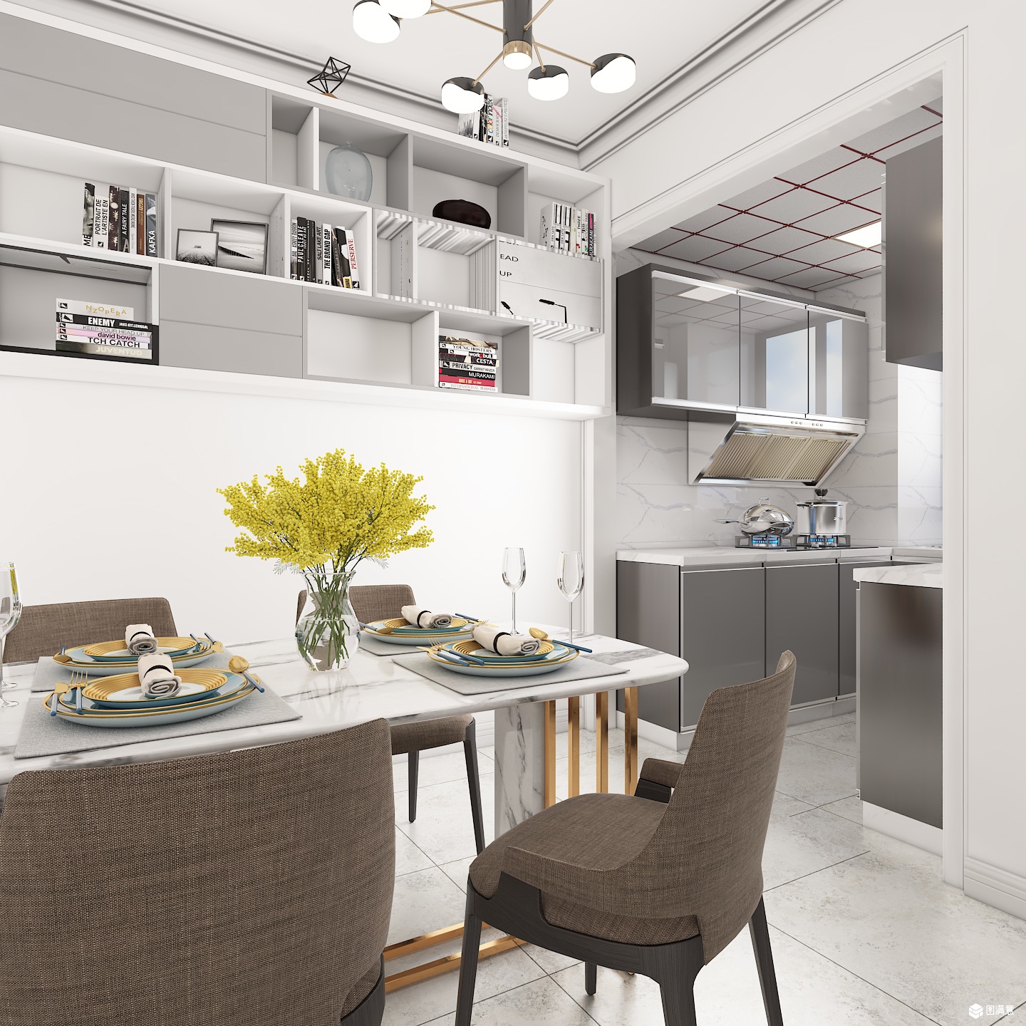 开放式厨房结合餐厅,延伸了视觉感