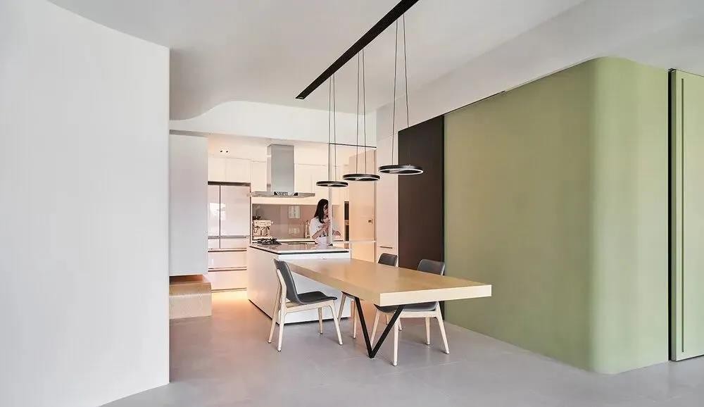 为了解决油烟问题,规划了半高的铁件拉门,可以从中岛拉过去阻隔部分油烟。