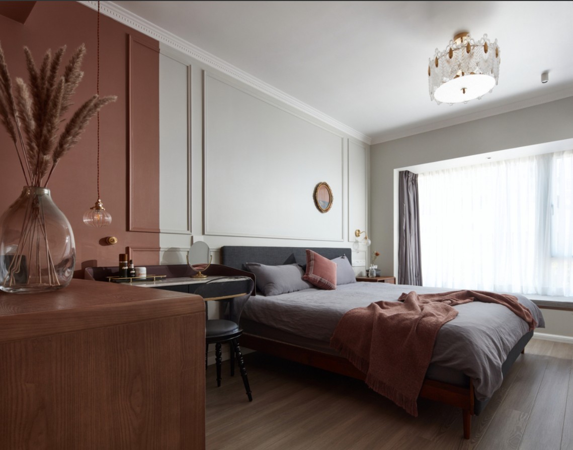 脏粉和白色的乳胶漆拼接出油画般的温柔和梦幻,含而不露,保持着整个空间的色彩平衡。