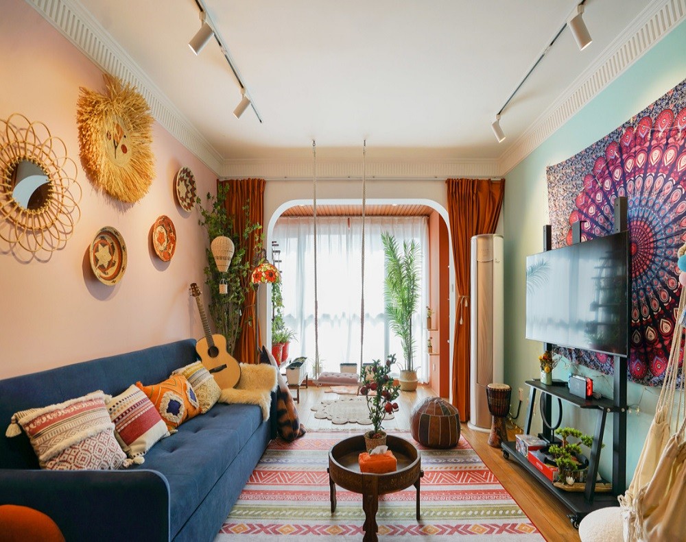 客厅相对的两面,色彩产生了比较大的差异对比,为软装饰品丰富的色彩提供较大的色彩区间,可以让多彩的软装完美的融入其中。