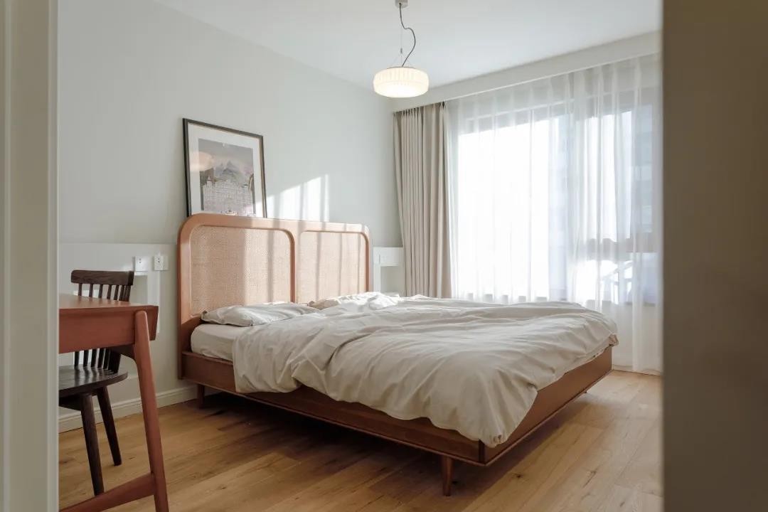 卧室没有床头柜,设计师巧妙的用石膏板的凹洞设计成“床头柜”。