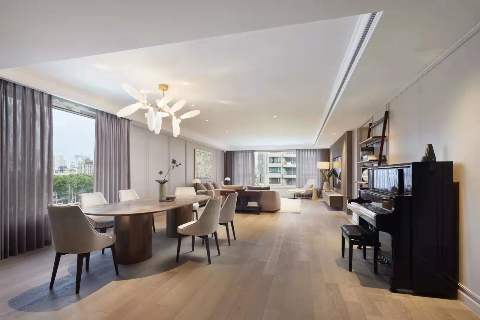 客厅和餐厅连通,让设计表达更具连贯性,充分发挥了大平层的户型优势。