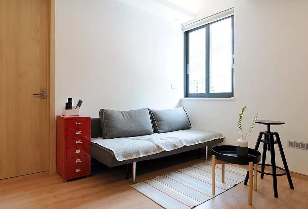 次卧做了客户夫妇的主卧,刚好够用。空间以白色和原木色为主色调。