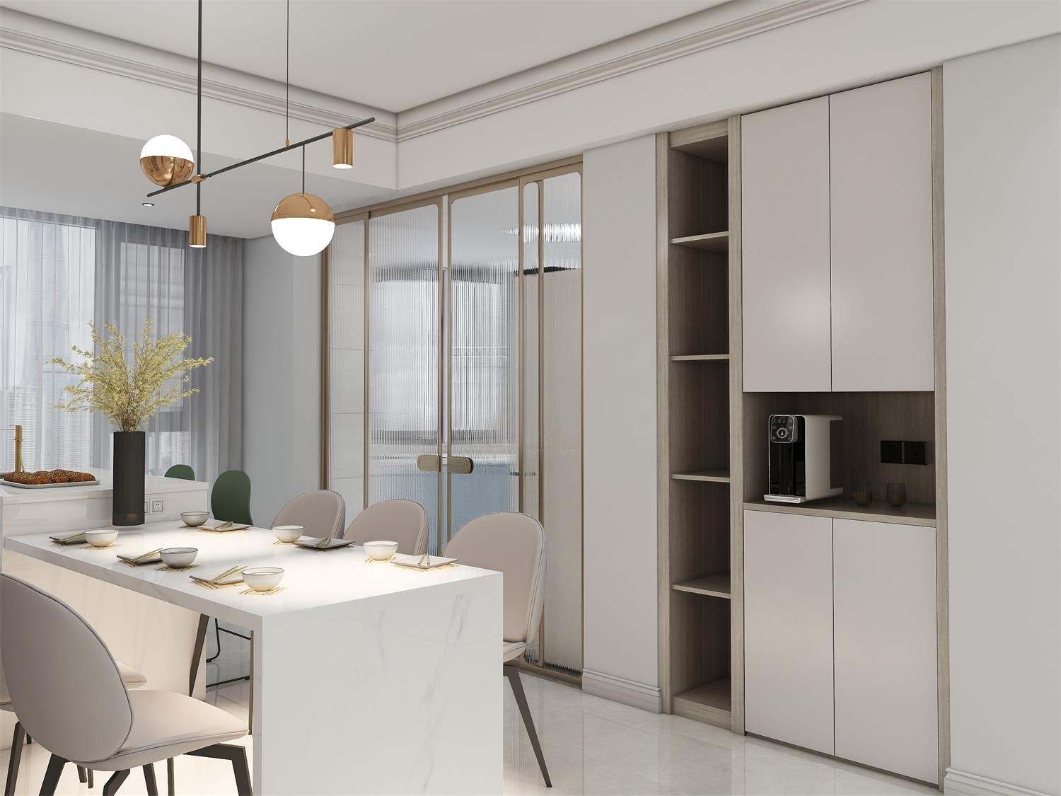 客厅简介大方,做了窗帘盒,隐藏了电动窗帘电机。