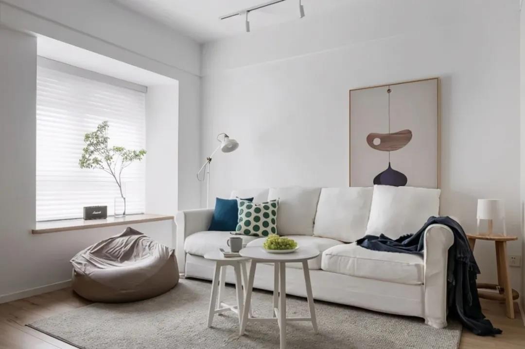 茶几旁摆放懒人沙发,平时可以坐在这里看书,慵懒惬意。