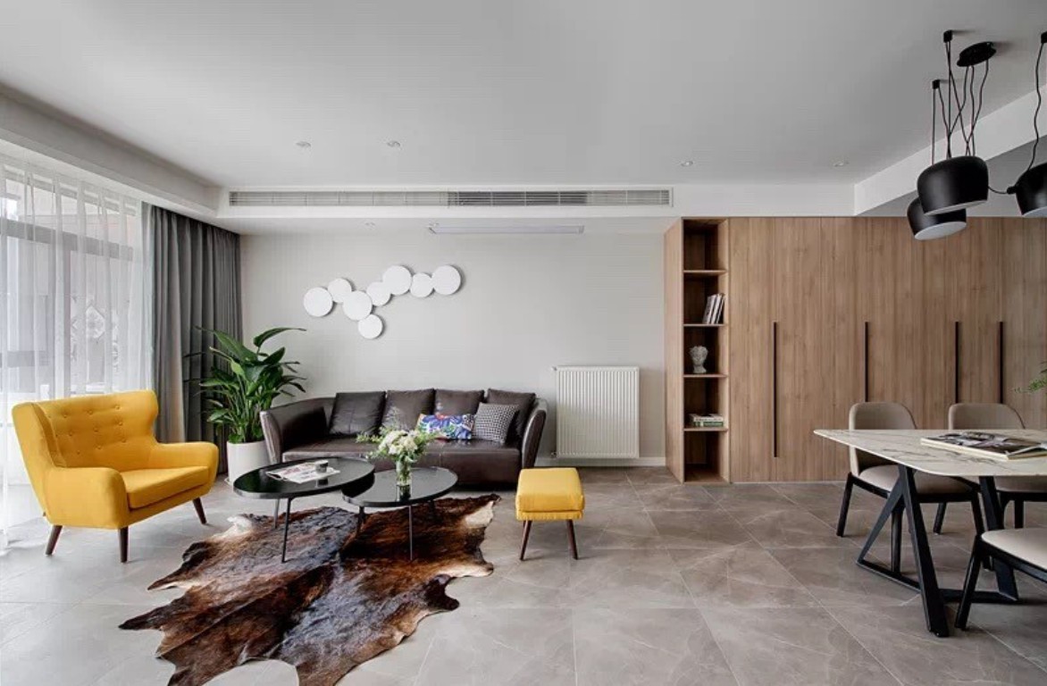 客餐厅一体,深色地砖搭配起来更显得具有设计感