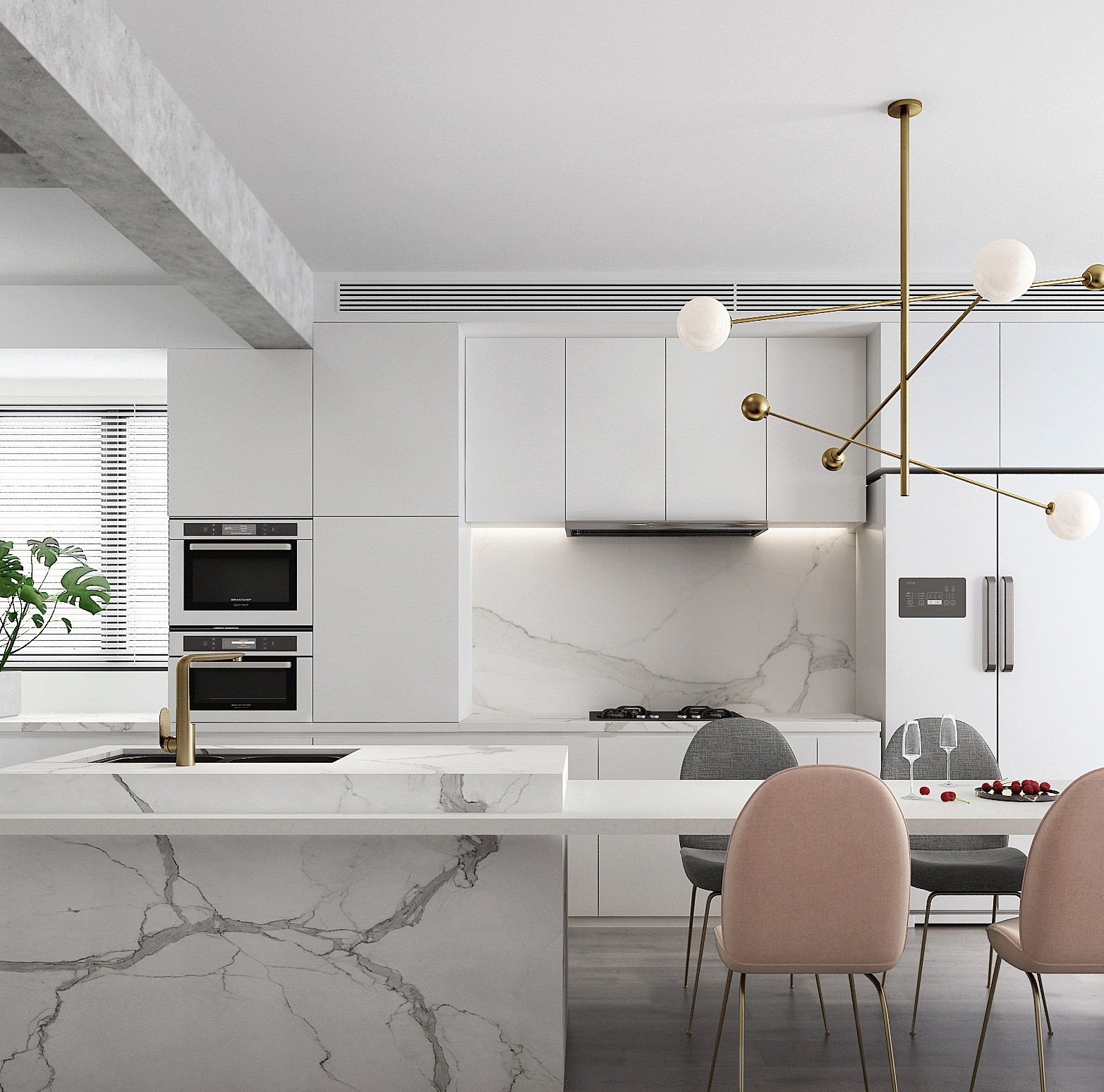 灰粉色的出现打破空间的沉静氛围