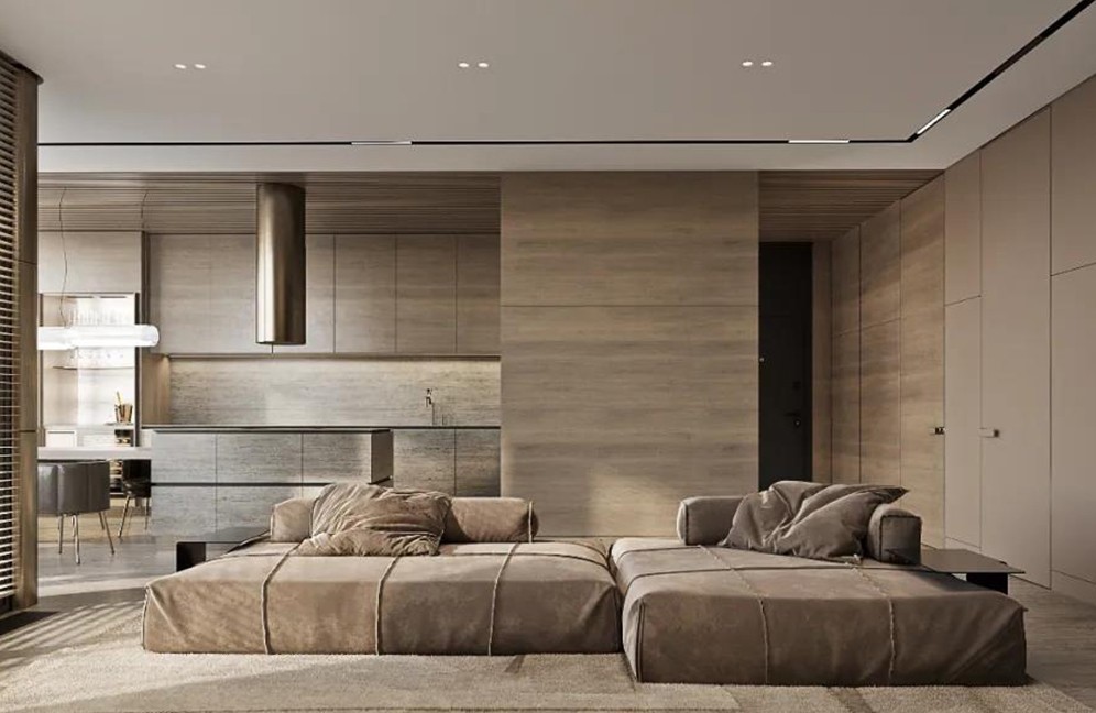 餐厨区域打破互相独立的传统设计,呈开放式L型结合,生活动线更加自由流畅。突破空间结构的限制,融入生活又高于生活