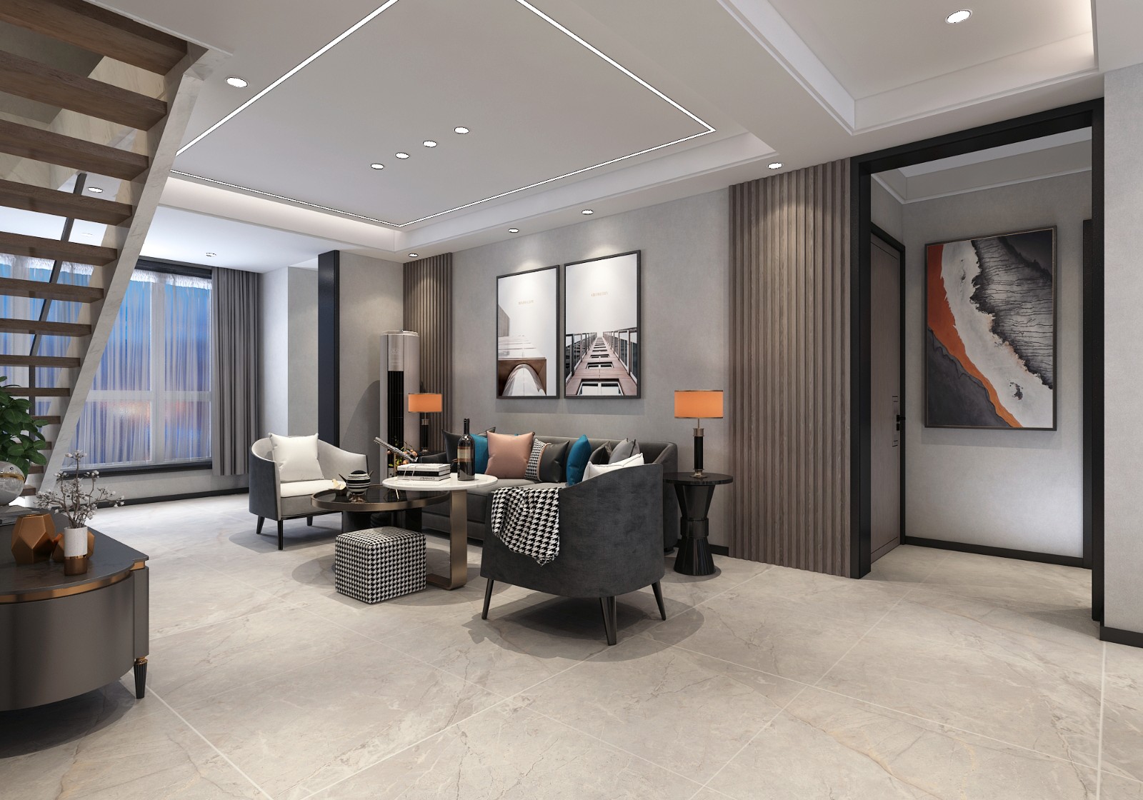 楼梯选用的是让视觉有穿透、延伸感,精致的悬浮式楼梯,搭配灯光营造,会带来一种未来空间的错觉