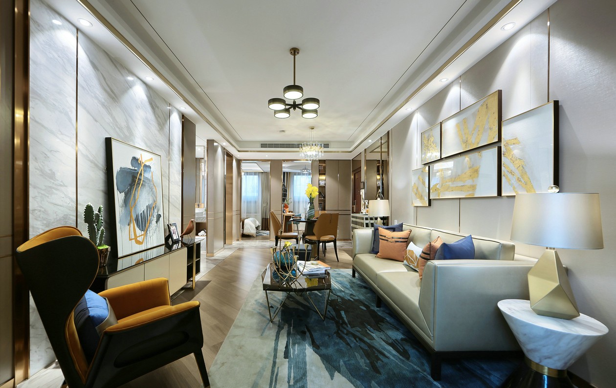 简化了繁复线条的家具兼具品质与格调,抽象的挂画增添艺术典雅的氛围,任由光影恍惚流转,在不言不语中丰富思绪与灵感