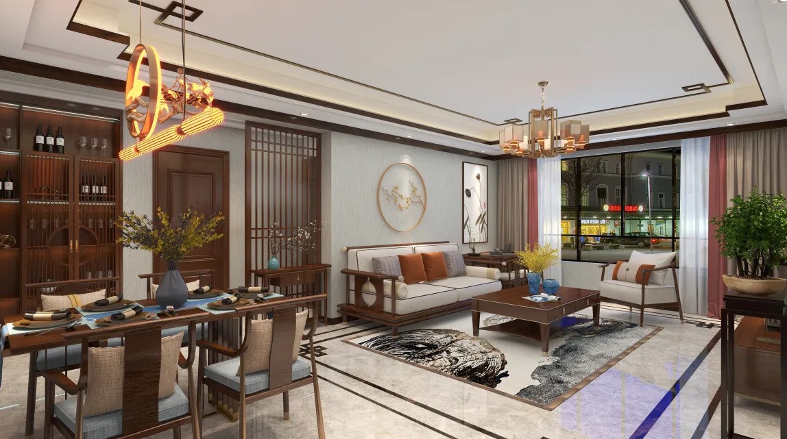 简单大气的客厅设计,去繁就简,多用实木材质提升空间质感。顶面、地面线性设计相互呼应,相辅相成,强化了视觉冲击力。