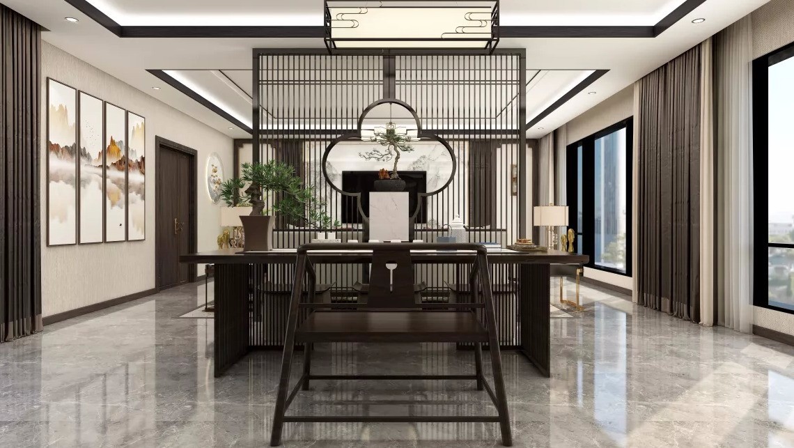 搭配以洗链的线条刻画柜体和门板,简练线性元素创造一致、明确的视觉感受,再将优雅的莫兰迪色调注入俐落干净的空间中,佐搭温润鱼骨纹木地板、抽象艺术画作、简洁现代感家具和造型灯饰,增添整体层次同时形塑典雅气质的空间情调。