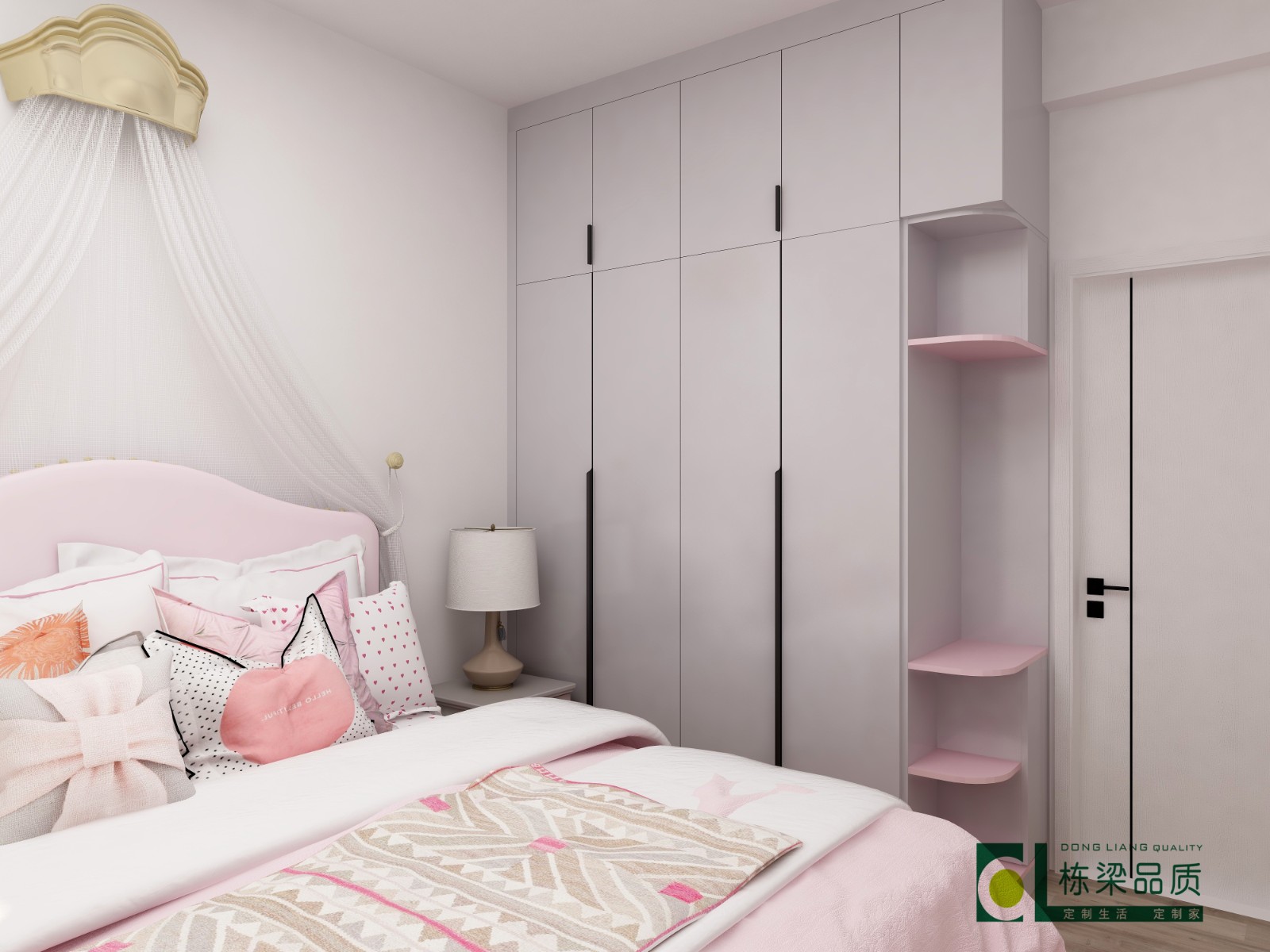 男孩房和女孩房依旧以极简为主,靠门做弧形设计。