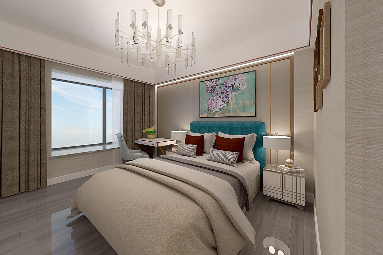 色彩应以统一、和谐、淡雅为宜,对局部的原色搭配应慎重,稳重的色调较受欢迎,主要运用到木材质,张显简朴大方之气。