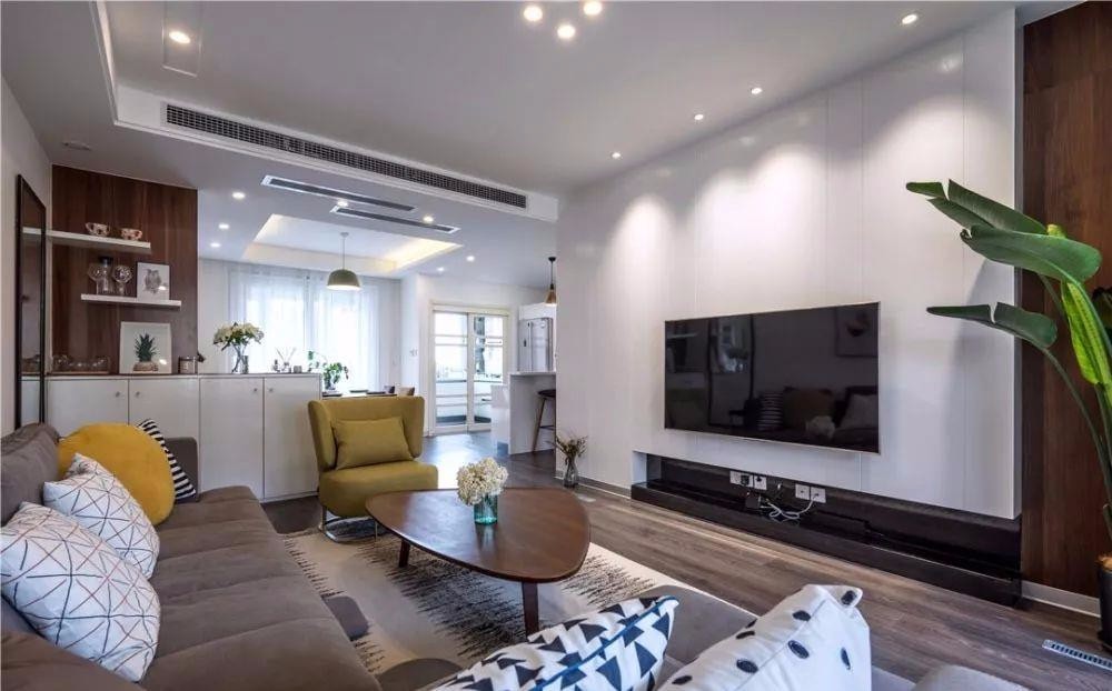 电视墙简洁干净 在现代风硬装的基调上 线条和装饰 点缀中古的元素 将空间升温