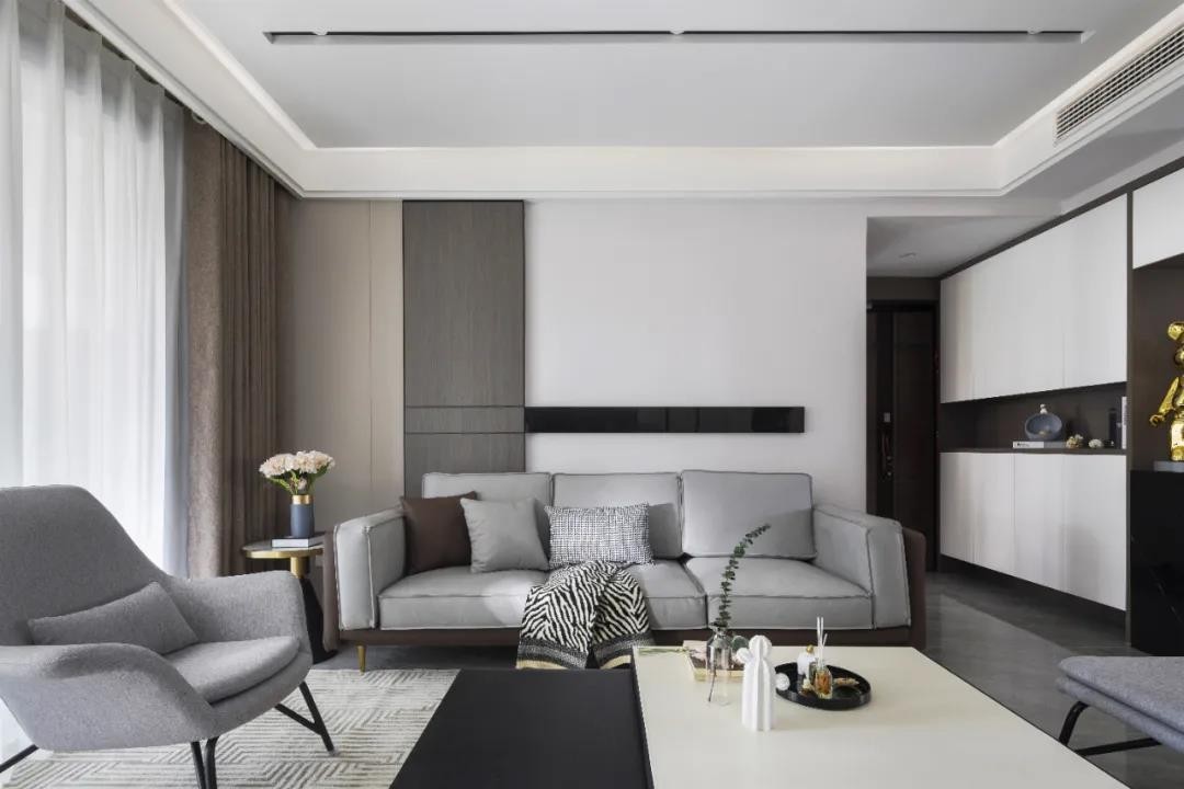在整个过程中,设计师对于品质的把控上,设计师全程跟进装修,在与业主的沟通当中,让业主对于美的探索有了一个全新的认知,体会到设计的多元、复杂和魅力,还有设计师对于美的坚持。整个空间的设计是希望它可以做出一种当下现代生活的高品质感出来,让人一进入就能感觉到它的高品质姿态,所以我们用现代轻奢的氛围和手法去营造出这种调性。
