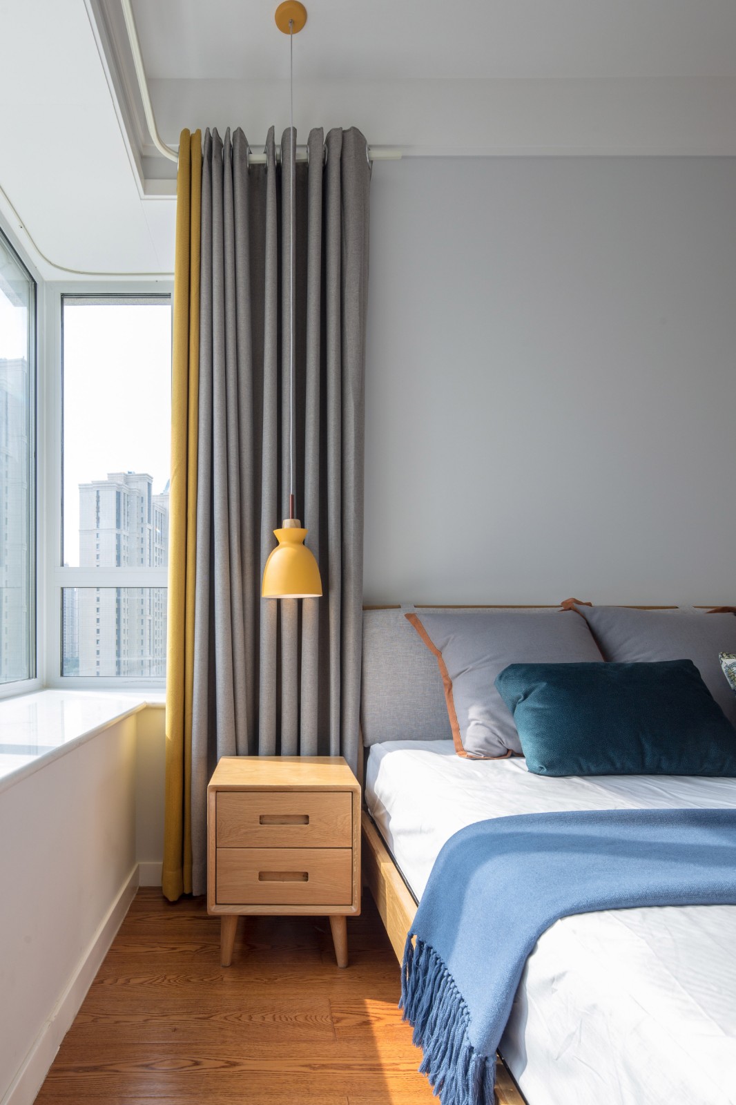 现代与复古并存的感觉,双色窗帘的加入,让卧室也变得浪漫起来。