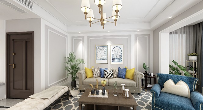 业主是一个30多岁的年轻人,但是喜欢的东西要有复古和现代元素,所以特意为他设计了现代美式风格,首先入户玄关的位置是非常讲究的,但是和电视墙是连在一起的,也不能太浮夸突兀,所以采用了传统的玄关柜,原来卧室没有衣帽间,这次在进门右边增加了一堵墙,增加了一个衣帽间的位置,从而增加了空间也不失格调,墙面采用了简单的石膏线条做的“护墙板”低成本显大气