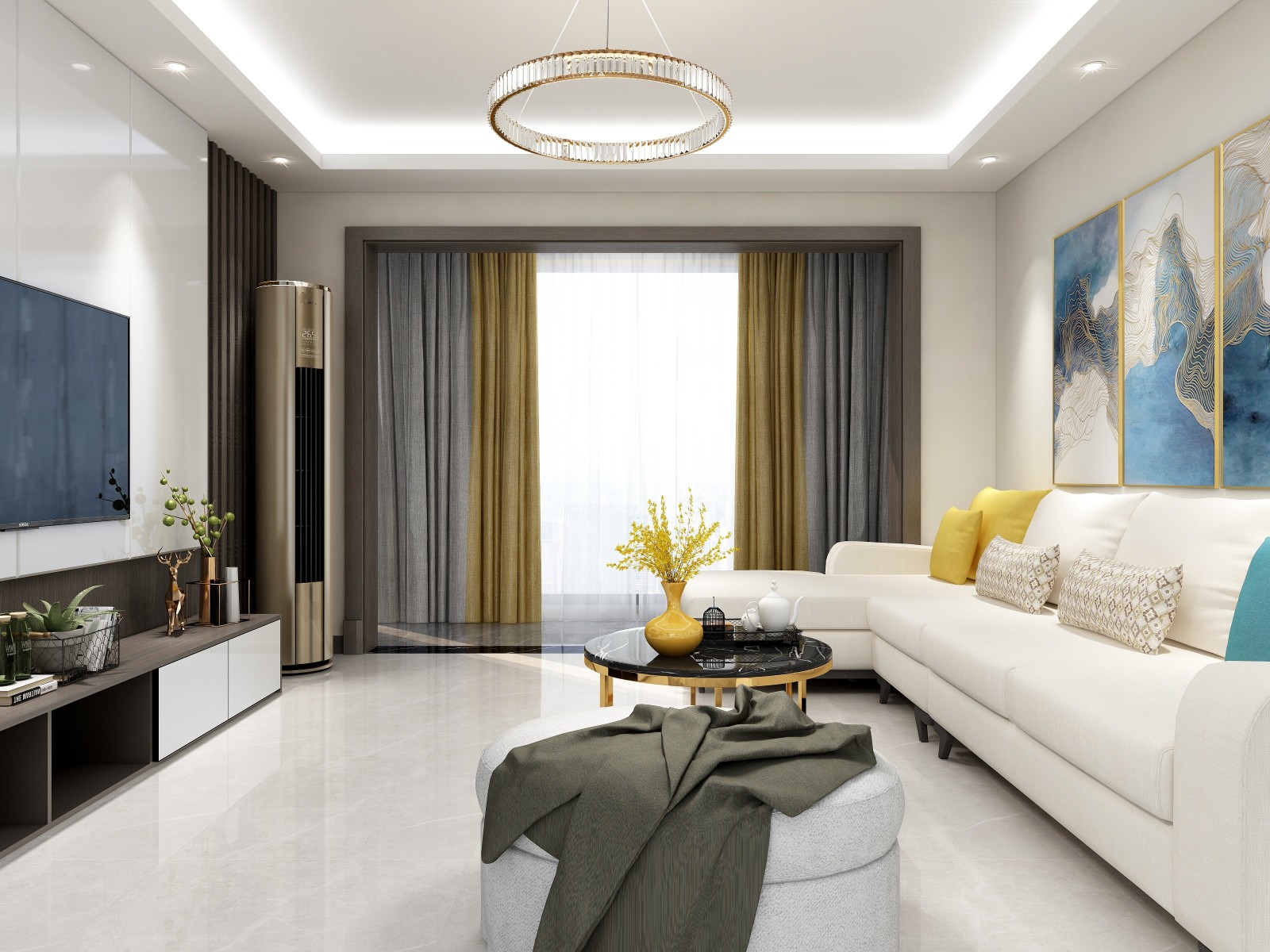 电视柜与电视背景墙用大理石加定制做的。