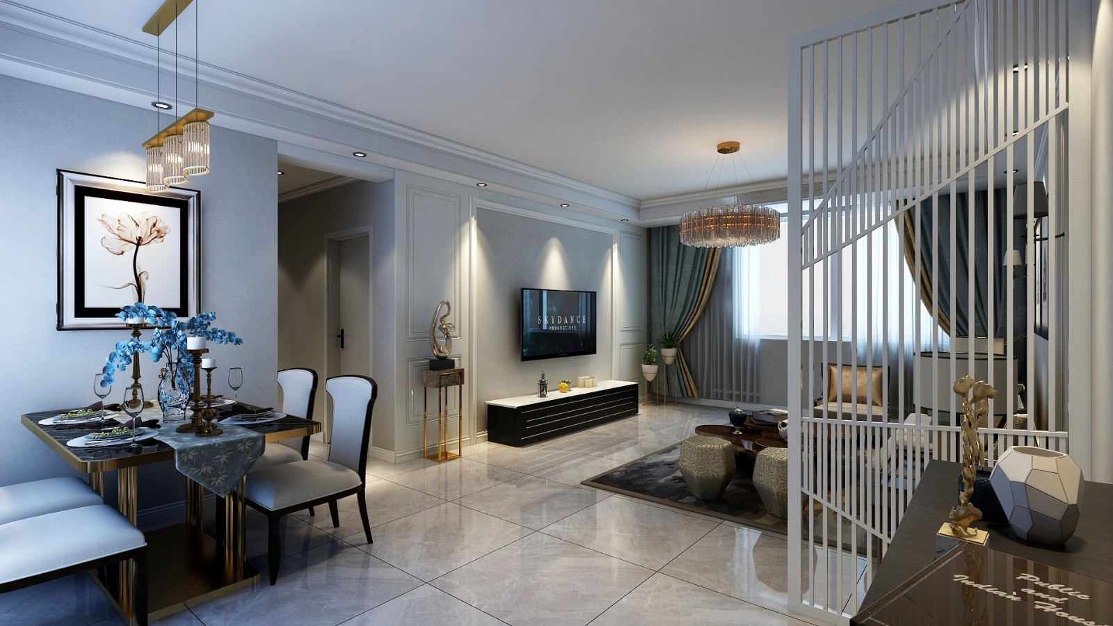 简欧风格装修在整体色调上面多使用较浅的颜色,然后在室内整体色调的使用上面采用对比色,让室内整体更呈现出一种大气也不失简约的装修。
