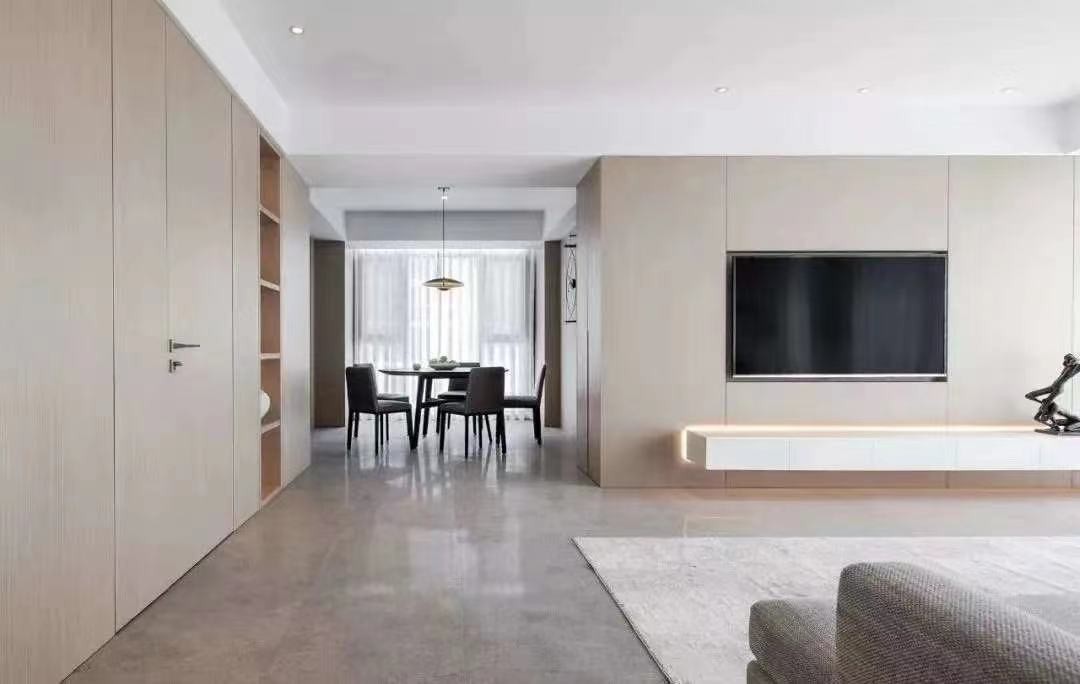 大平层,三房两卫两厅,东户,木质感的墙面,布置简约家具,简单宁静舒适