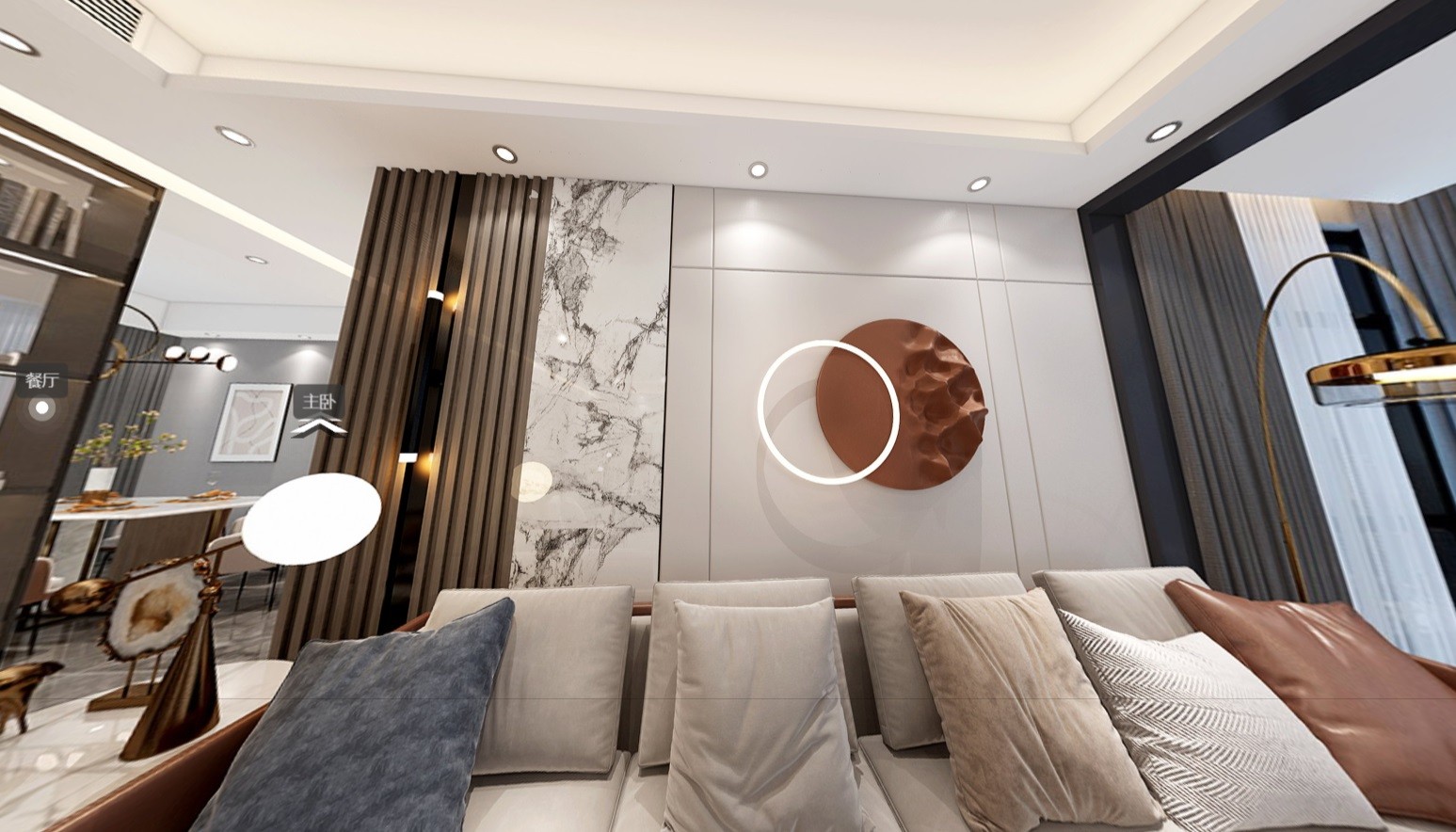 客厅整体简约风为主,在材质运用上使用木饰面,石材岩板,在简单的材料种,让空间显示出***感,加上吊顶墙面洗墙灯的加持,对整体空间感得到了很大的提升。