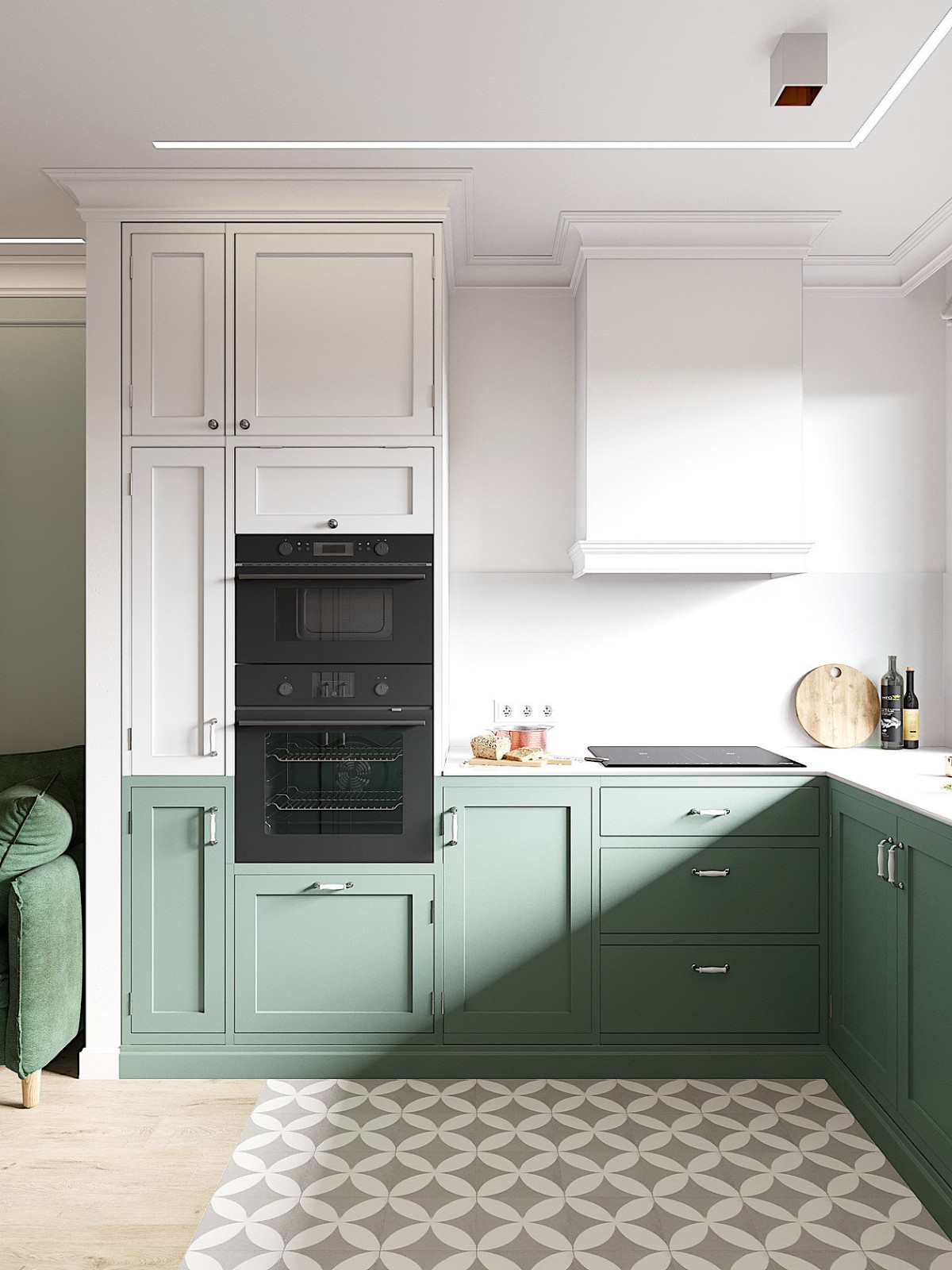 绿色的门板与客厅的沙发相呼应,整体协调。