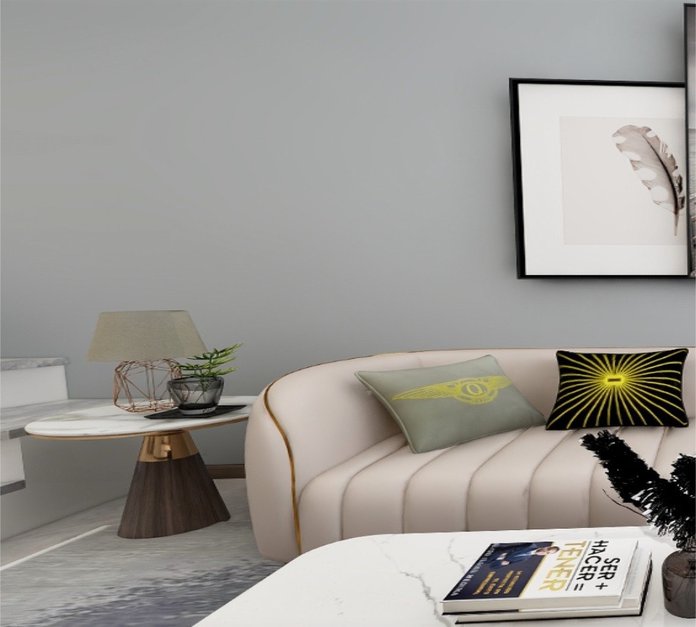 客厅以灰色为主,搭配镶金边的轻奢风沙发、绿植,使整个空间不单调。