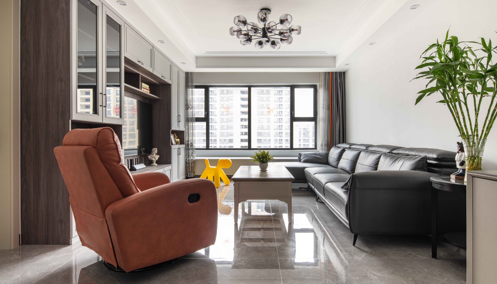 长方形茶几为空间增添了耳目一新的感觉。