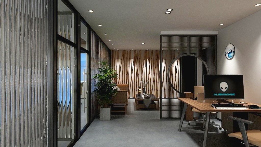 竹子为主要设计语言。接待区设计在门口区域。