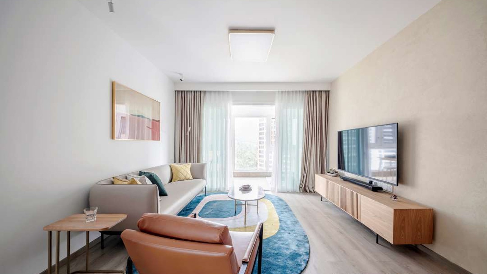 简洁舒适的家具,趣味十足的装饰画,营造舒适轻松的居家氛围。
