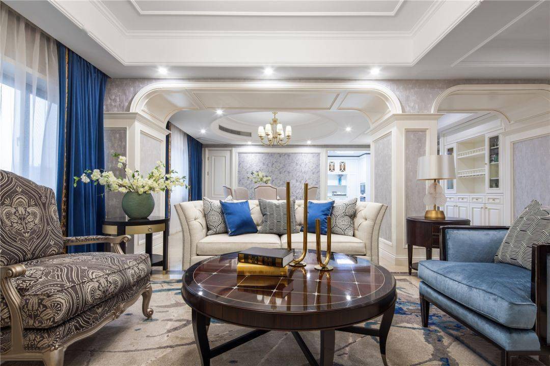 客厅运用木饰面与硬包结合,从色彩和形态上丰富了空间层次感,欧式的奢华格调也更为突出。