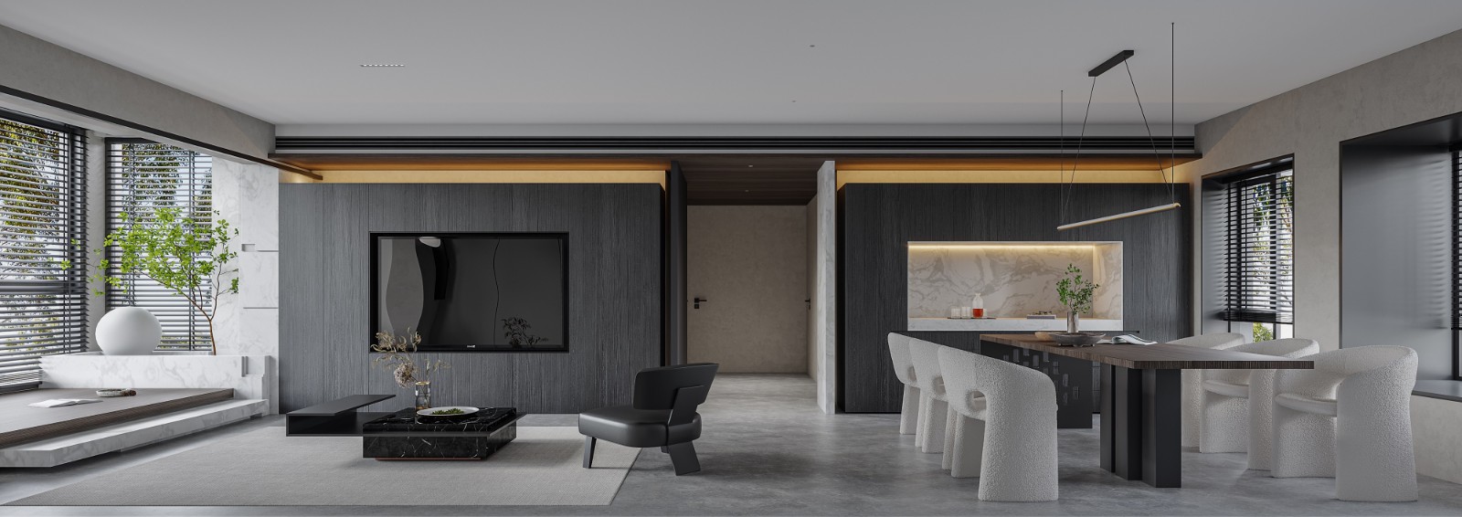 餐厅与客厅的开敞互联,传达出微妙的视觉张力。