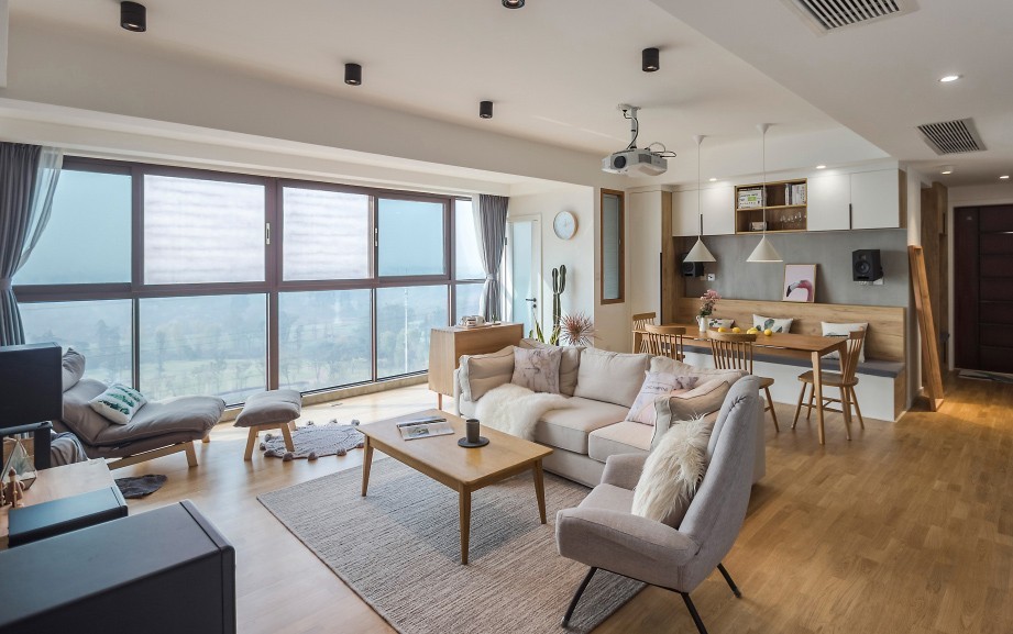 细节一:封阳台!扩大客厅使用面积,为妈妈在家里练瑜伽腾出了空间。最重要的是这样保持了家里的干净整洁度,还 一点不影响客厅采光。