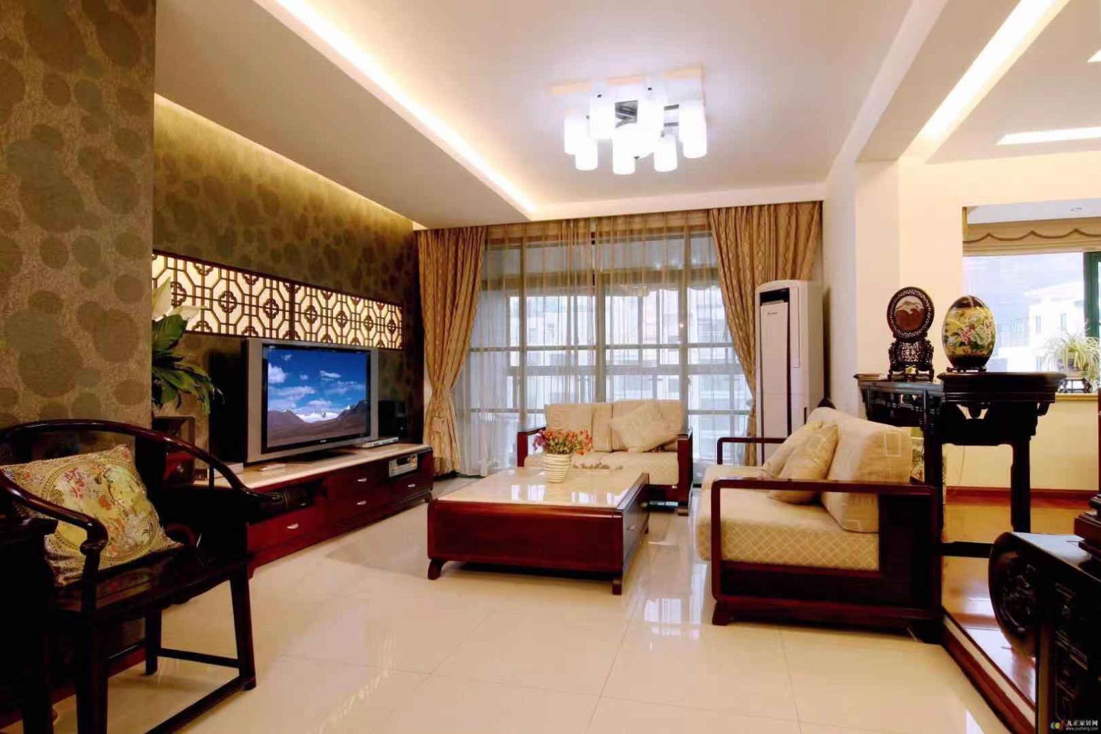 电视背景墙具有层次感,令空间氛围更为温馨。