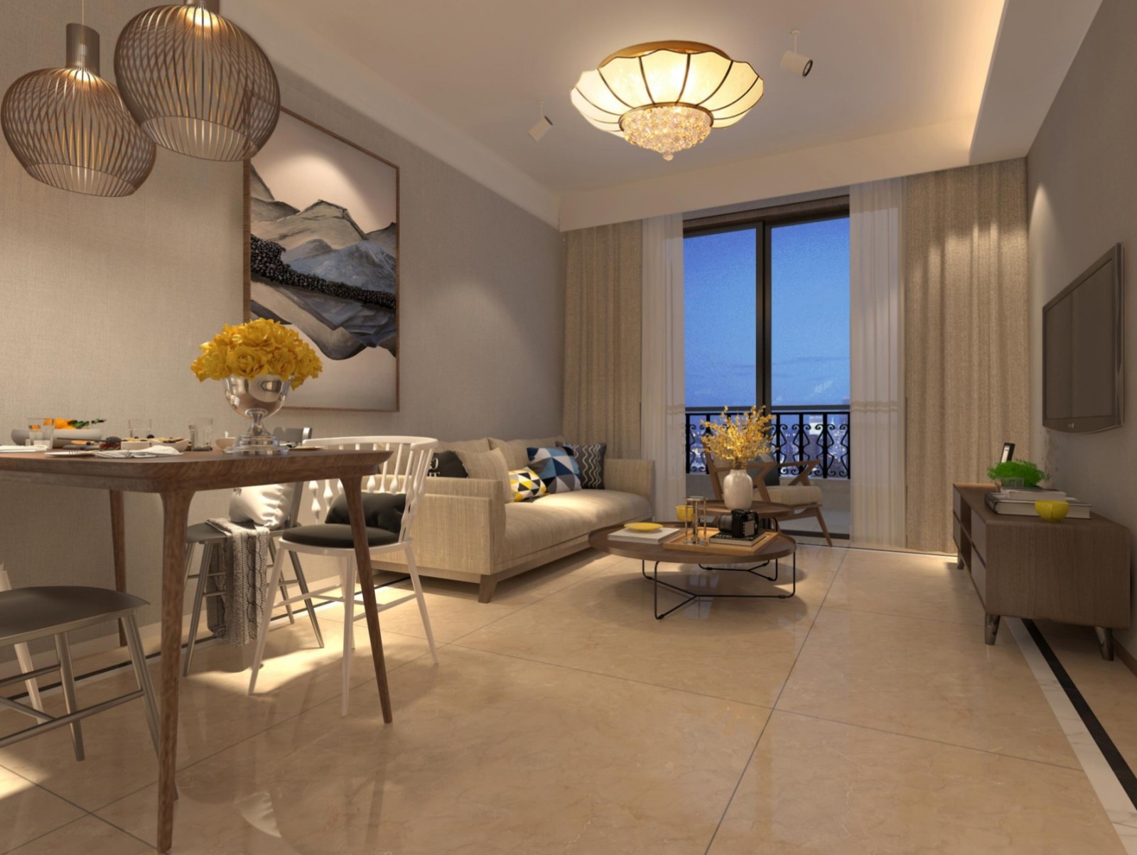 硬装主体力求简约、实用、节省成本,通过后期软装设计搭配营造度假便捷舒适的生活空间环境