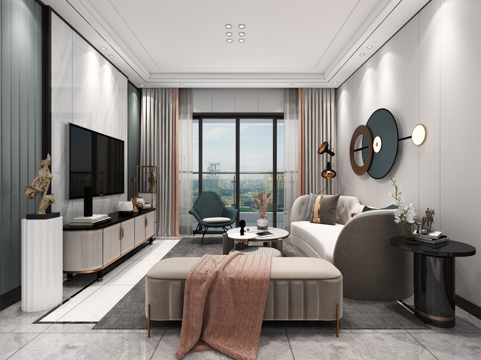 现代轻奢主要浅色调配墨绿色调色