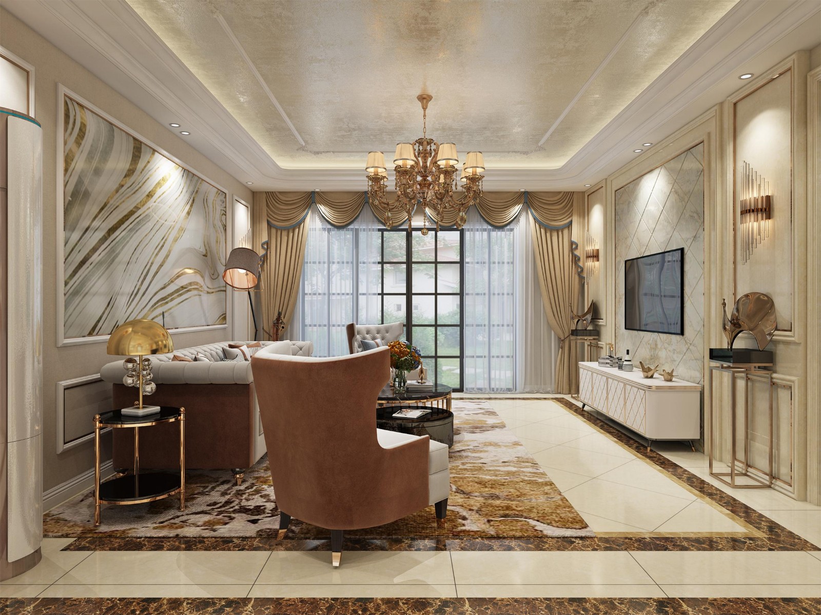 简欧风格,整体色调暖色系及欧式线条
