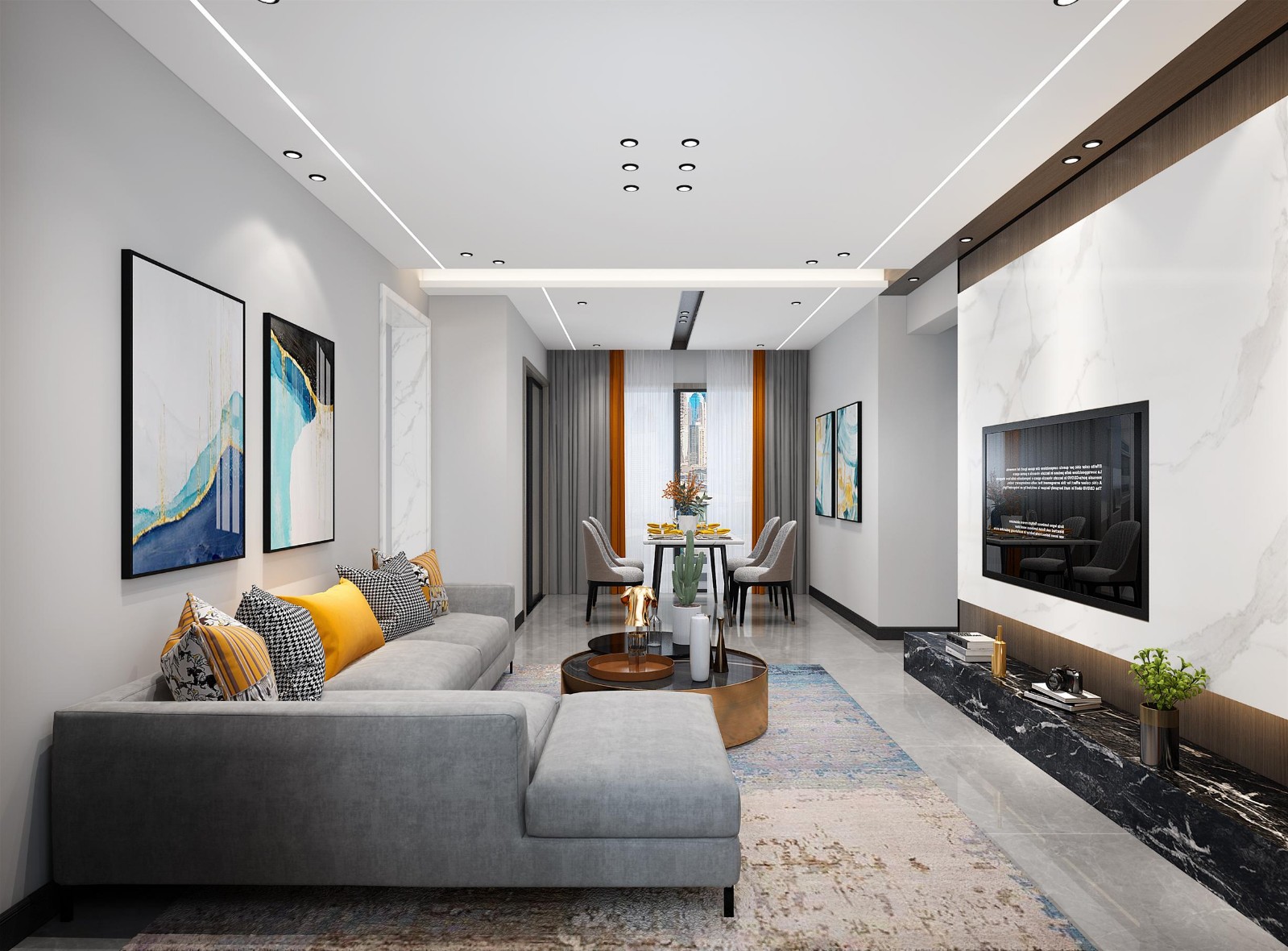 餐厅现代风格浅色系无主灯设计
