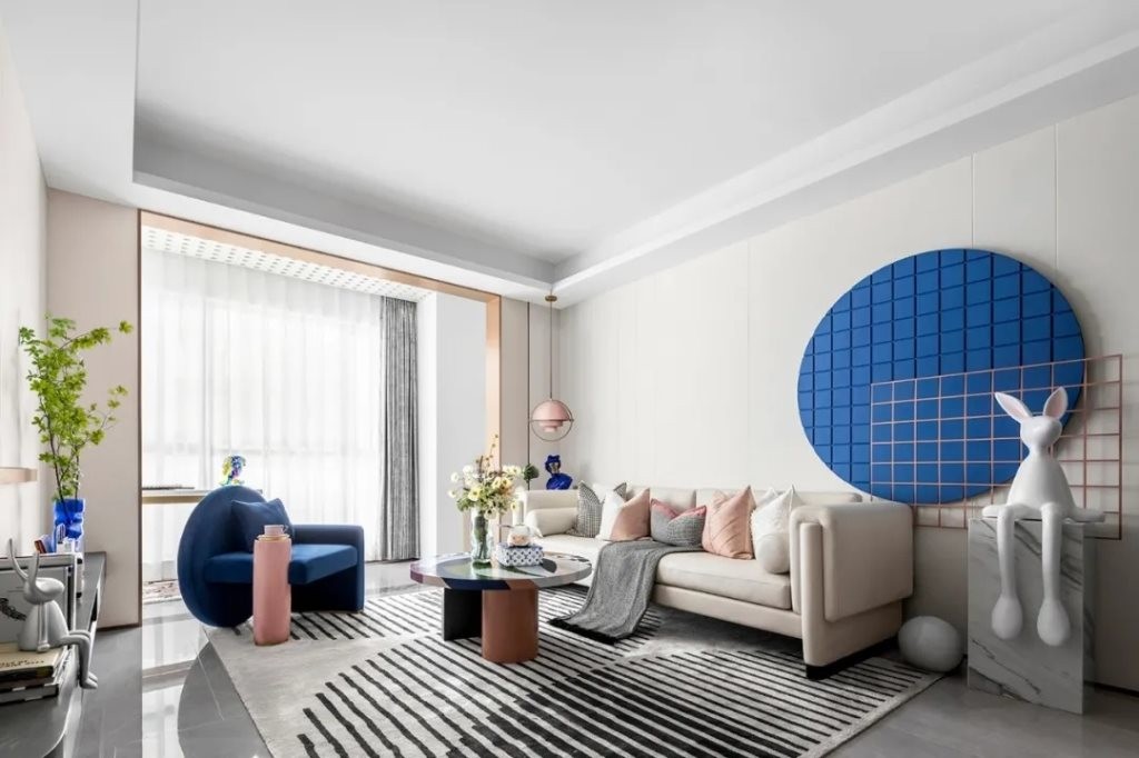 充满构成的空间内,几何元素串联家具,灯具,饰品之间的关系。艺术化的小物件是主人的审美与格调,绿植为空间带来自然与舒适的感受。