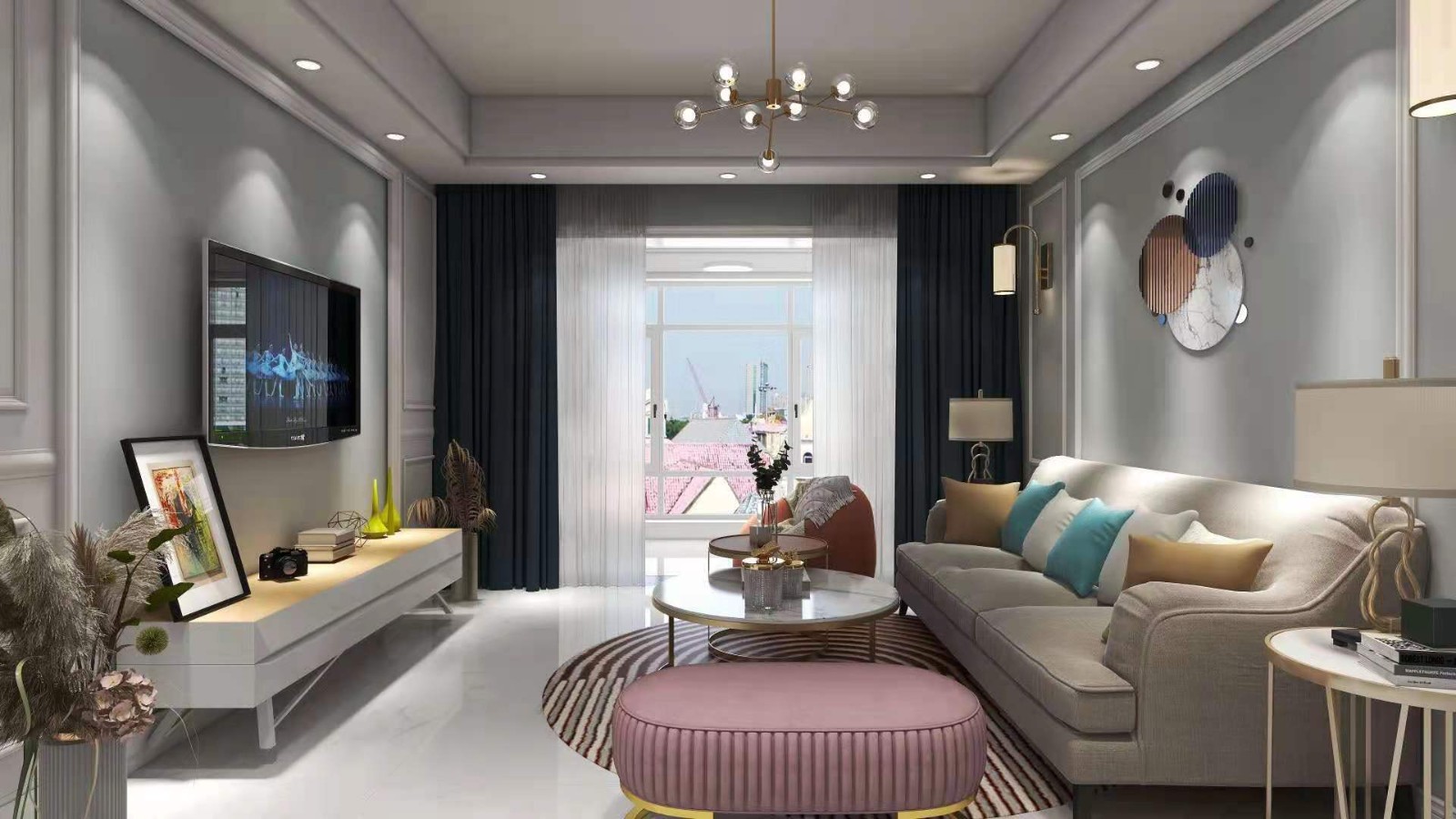 这个户型的客厅面积 有点大,所在留给客厅的面积足够。设计上也更加得心应手