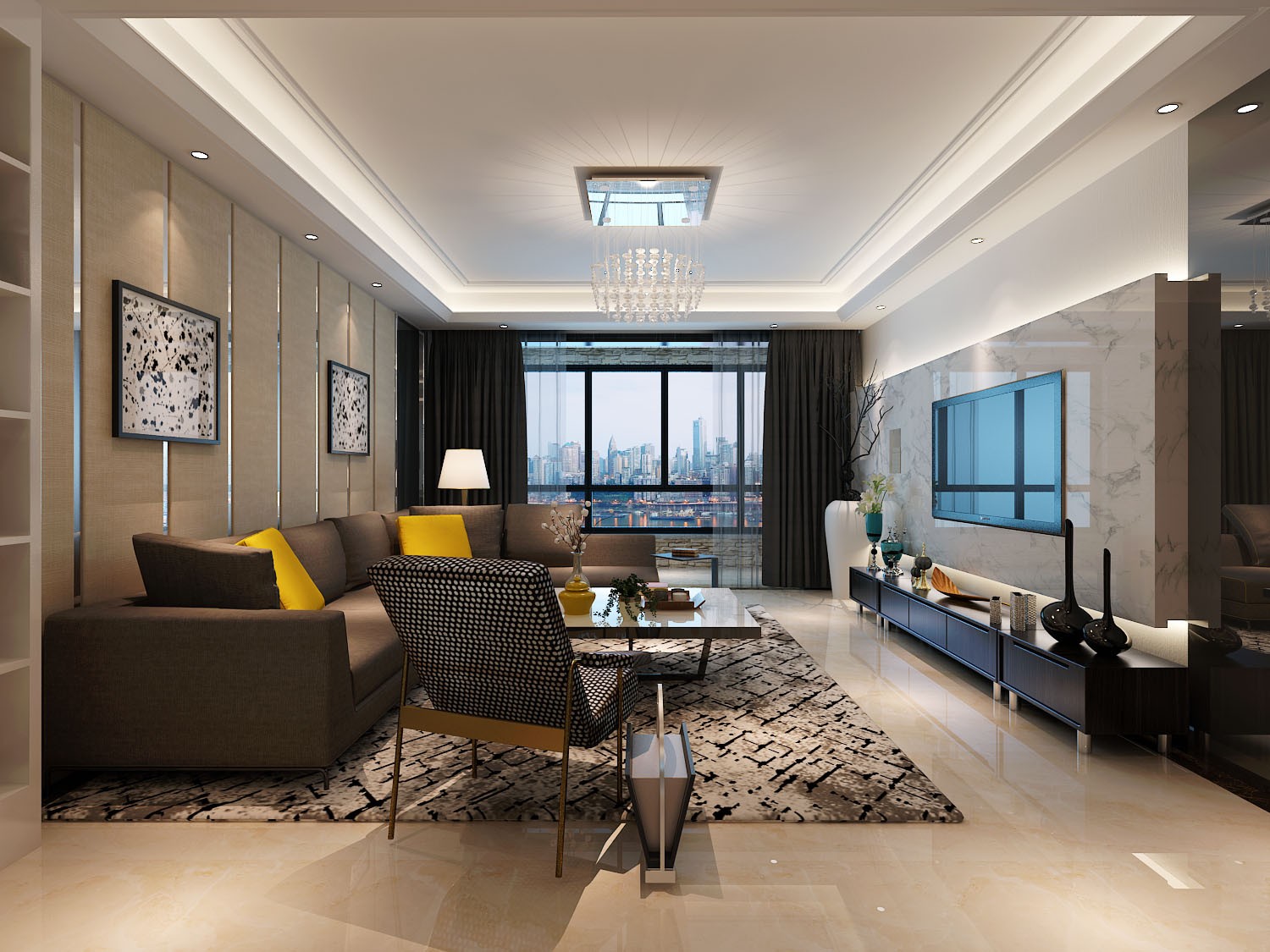 客厅整体色调偏暖,加上灰色沙发使得空间特别有层次感。