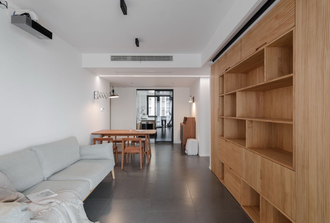 玄关转进来后视角,尽端设置了餐边柜,作为内玄关及餐厅补充功能。