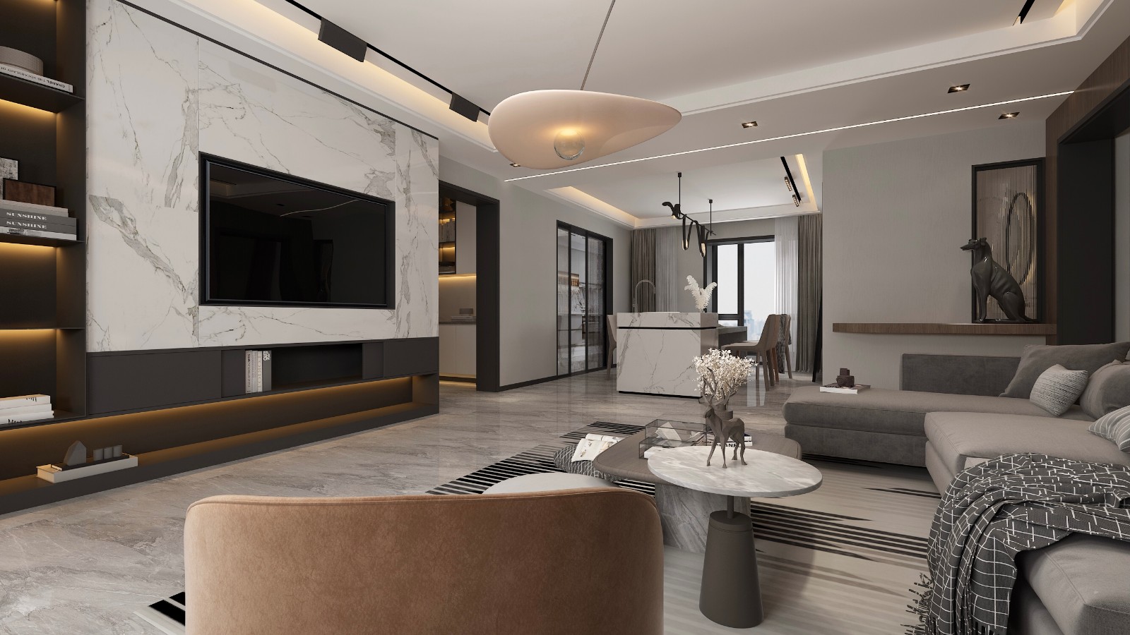 客餐厅一体的半开放式空间,满足功能和情调的同时,使得有限空间里的视觉观感达到***化。