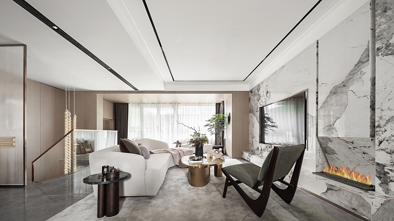 无主灯设计,线形灯为简约增加层次,大理石背景简约不简单。