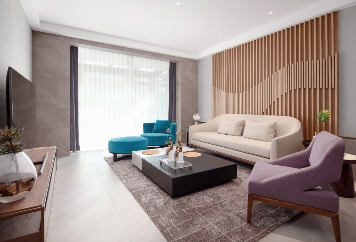 客厅打破传统框架,将繁复的装饰凝练为简洁现代的设计语言,温婉的元素传递特有的气韵,属于空间,也属于人。