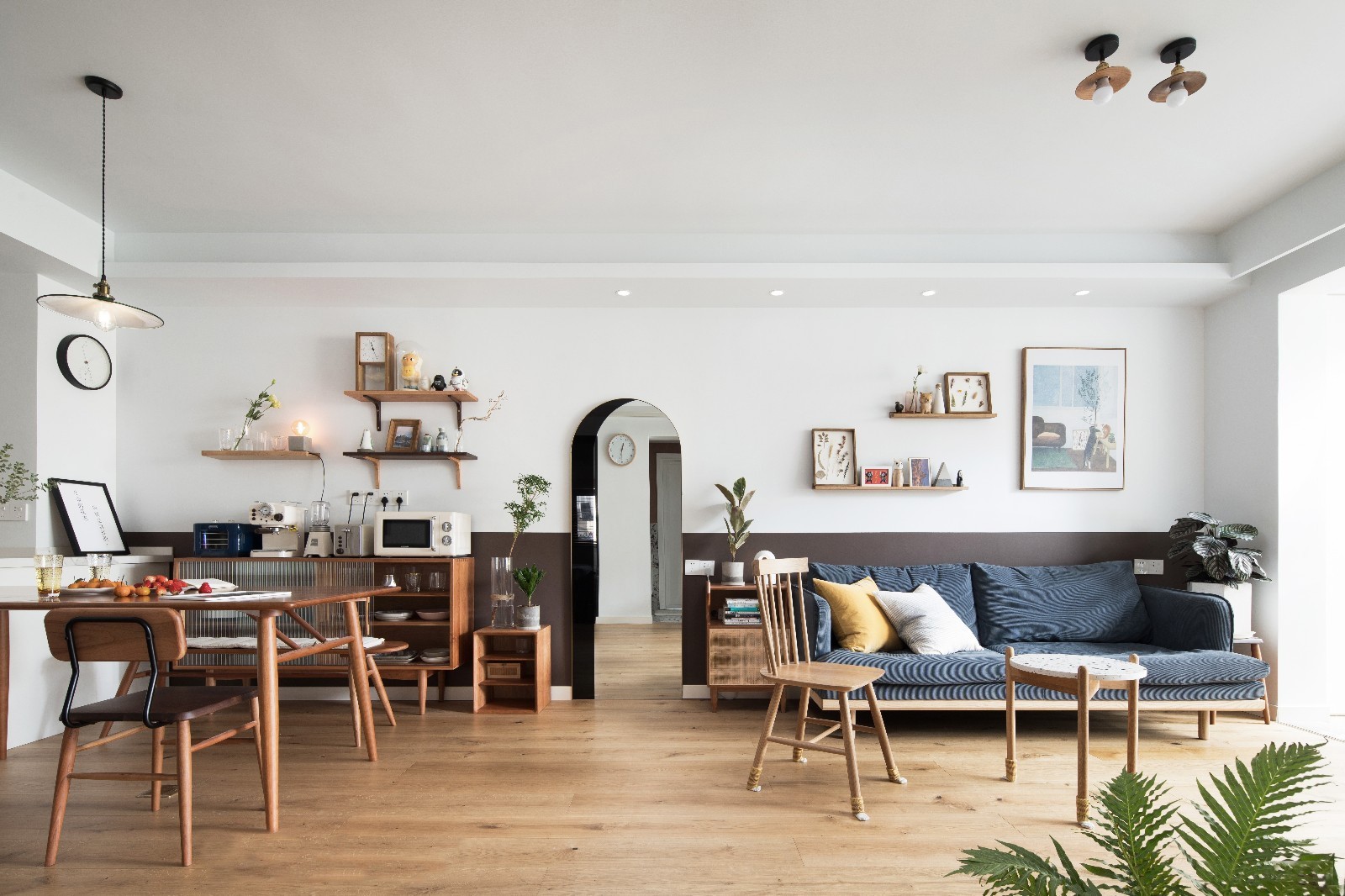 餐厅与客厅一体式的开放格局,让整个空间通透明亮,温润的原木地板满是温暖的感觉。