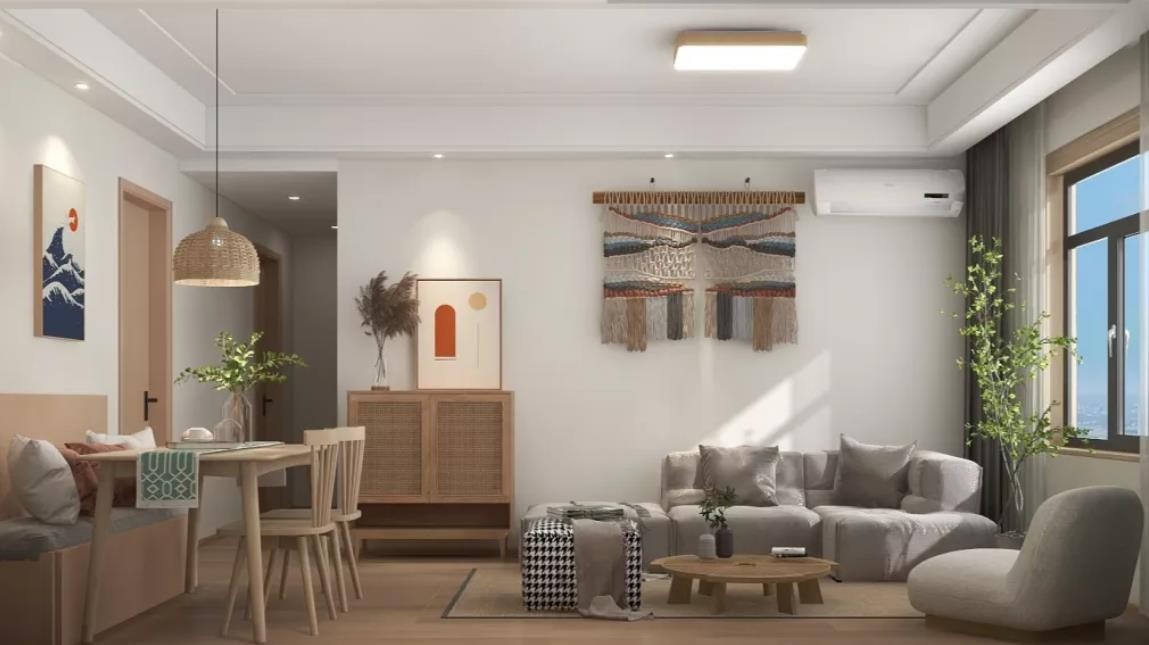 客厅采用了原木色为主的家具,整体色调温馨,与白墙相呼应,简洁中透露着精致,整个家愈发得安然温馨。