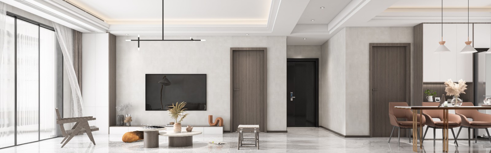 四房的布局让空间得到了无限的发挥。厨房,客厅,餐厅一体化设计从视野,行动,光线和气体的流动方面都得到了很好的体现。